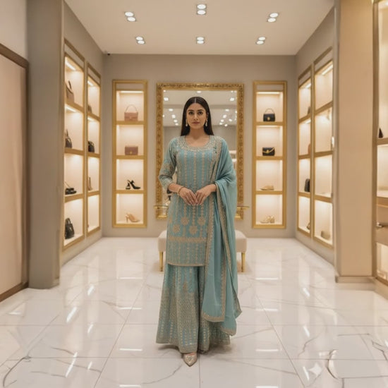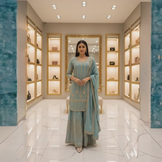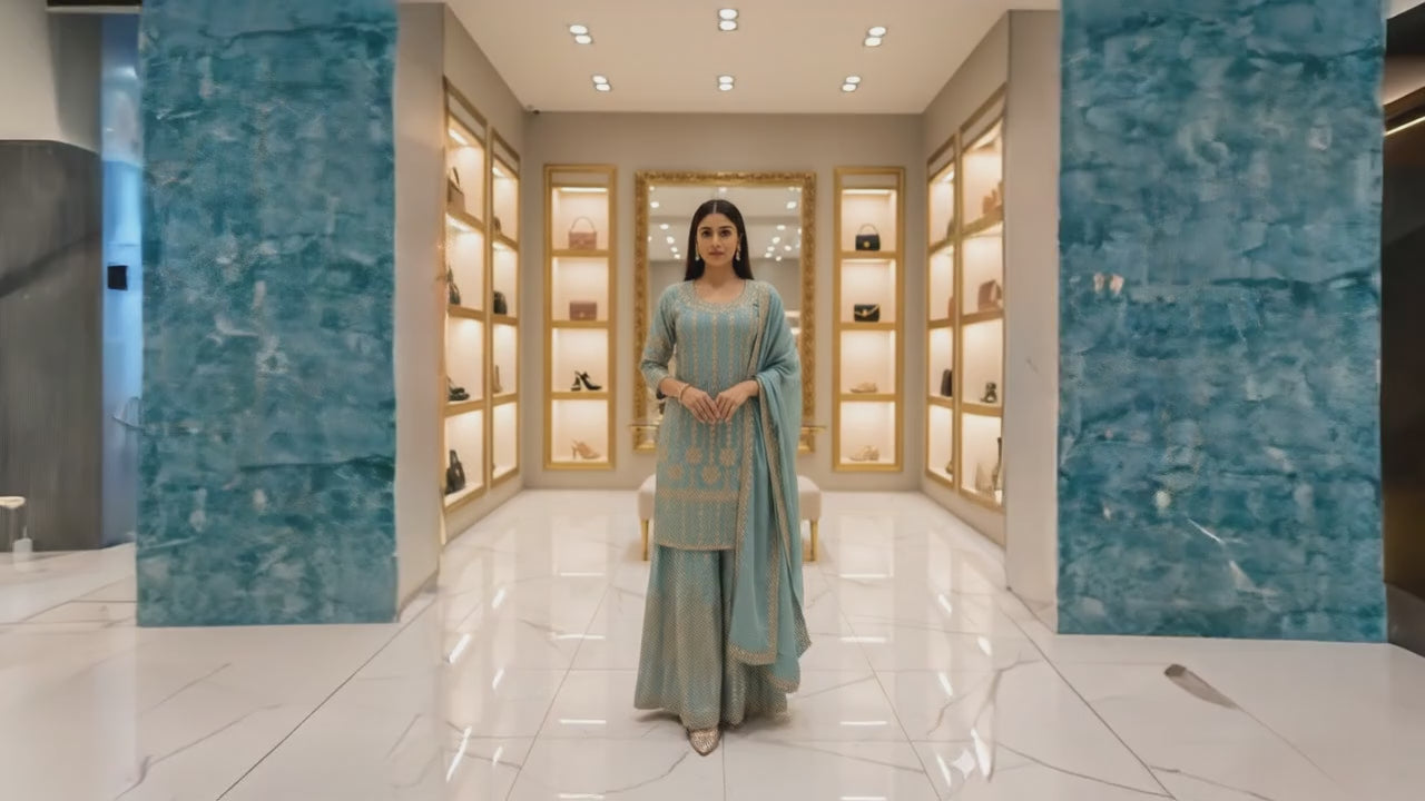 Introducing the Chinon Fabric Beaded Dress by OMER WEARS – a stunning addition to your wardrobe that beautifully blends elegance with tradition. Crafted from high-quality Chinon fabric, this dress is designed for those special occasions where you want to make a memorable impression.