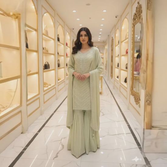 Chinon Fabric Beads Work Dress | Elegant Ethnic & Party Wear by OMER WEARS