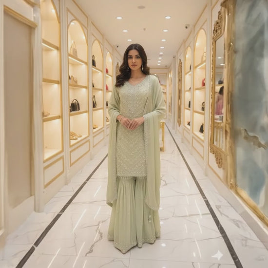 Step into a world of sophistication and elegance with our Chinon Fabric Beads Work Dress from OMER WEARS. This stunning dress is a perfect blend of ethnic charm and contemporary style, ideal for any party or special occasion. Crafted from premium Chinon fabric, it showcases intricate beadwork that elevates your look, ensuring you stand out beautifully wherever you go.