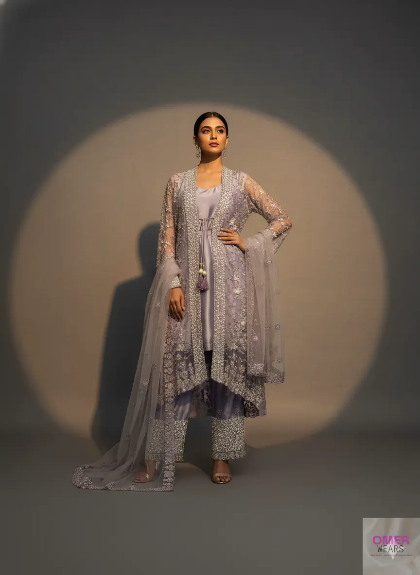This outfit is perfect for those who appreciate elegance and want to make a statement wherever they go. Whether you're attending a wedding, a cocktail party, or a dinner date, the Elegant Shrug Alina Cut Party Wear with Pant is sure to turn heads. Don’t miss out on adding this beautiful piece to your collection!